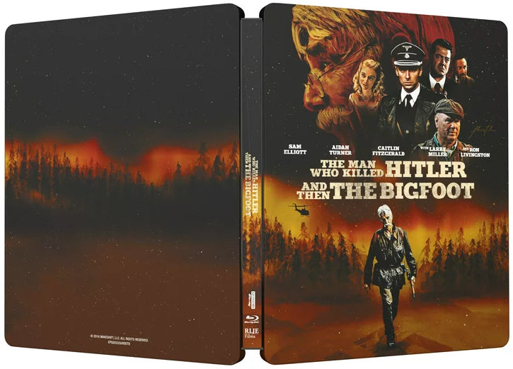 - The Making of "The Man Who Killed Hitler and Then The Bigfoot" (39:14, 1080p) in-depth featurette that includes comments from most of the lead and supporting actors (Sam Elliott, Ron Livingston, Caitlin Fitzgerald, etc.), writer/director Robert D. Krzykowski, producers Patrick Ewald and Lucky McKee, special effects artist Rocco Gioffre (!), and executive producer Doug Trumbull (!!). Among other topics, this piece covers the film's 12-year development, casting, production, characters, the director's short film Elsie Hooper (also included as a bonus feature), old-school special effects, editing, and the storyboard process.